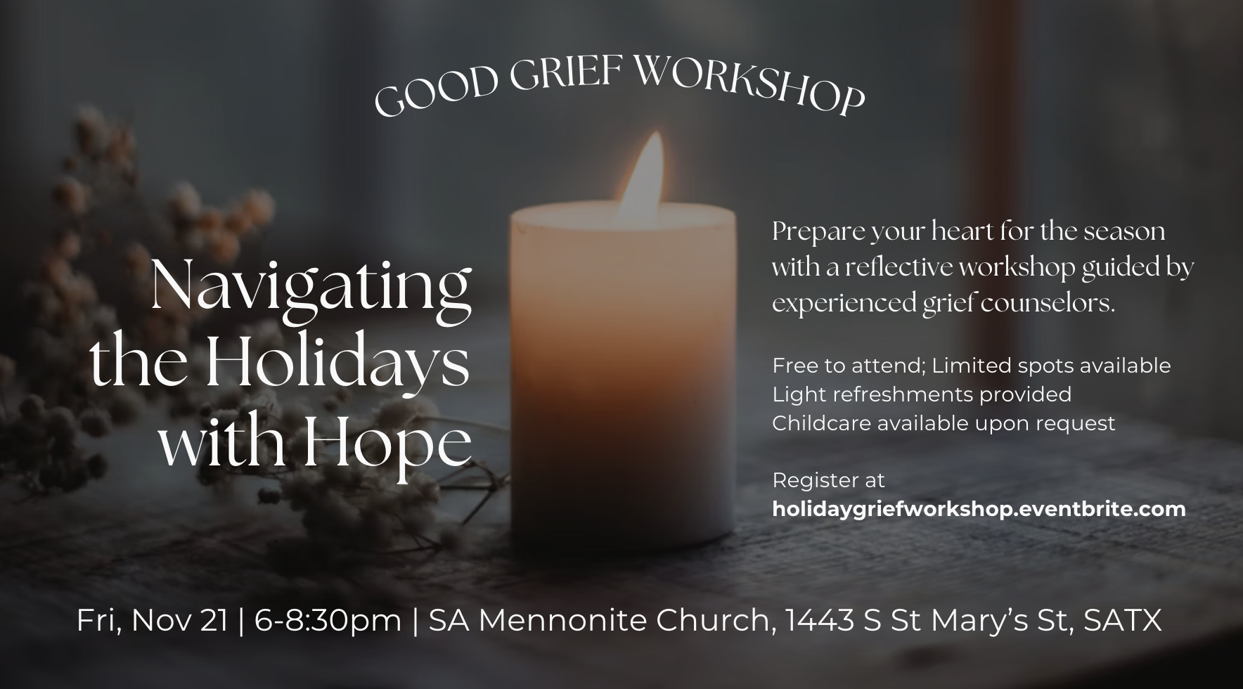 Friday, November 21, 2025 | 6-8:30pm | San Antonio Mennonite Church, 1443 S St Mary's St, San Antonio, TX